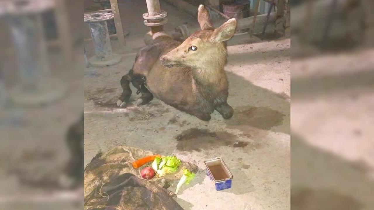 İşçiler su ve yem verdikleri geyiği gerekli bakımını yaptıktan sonra doğaya saldı.