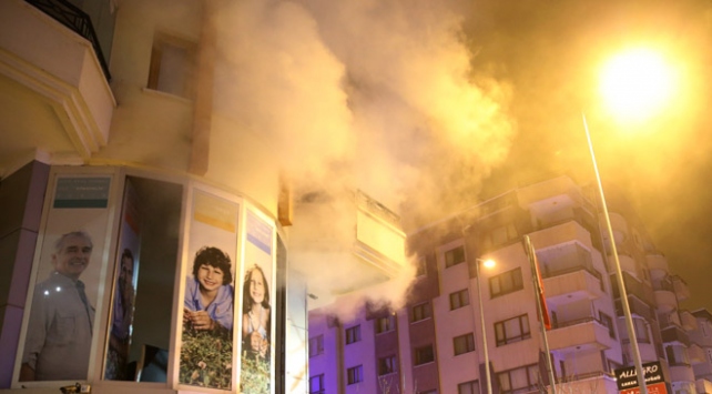 Kısa sürede büyüyen alevlerden yükselen dumanlar, 25 dairenin bulunduğu 5 katlı binaya yayıldı.