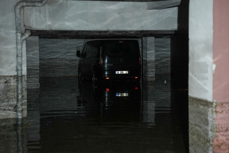 Sağanak nedeniyle Mamak ilçesindeki Bahçeleriçi Mahallesi'nde 5 katlı binanın altındaki otoparkı su bastı.