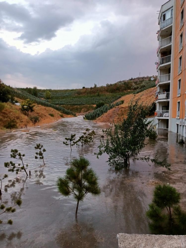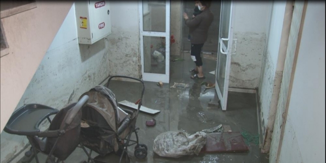 [Fotoğraf: İHA]Sel nedeniyle 4 ev ve 2 kazan dairesi kullanılamaz hale gelirken, bahçe katı dairelerinde su seviyesi 1,5 metreye kadar çıktı.