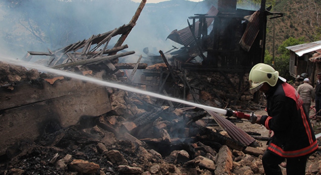 Yangında, 3 ev tamamen yanarken konutların birinin alt kısmında ahır olarak kullanılan bölümünde yer alan 4 büyükbaş hayvan da telef oldu.