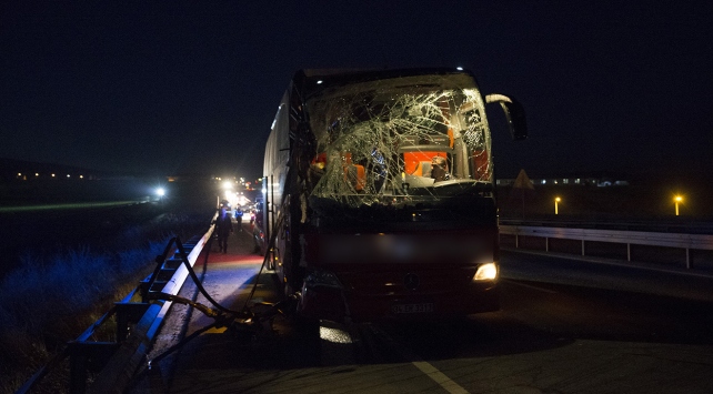 Mehmet N. (37) idaresindeki 34 EH 3313 plakalı otobüs, Ankara-Konya karayolu Ahiboz mevkisinde Hüseyin G'nin (51) kullandığı 06 AS 4210 plakalı kamyonla çarpıştı. Çarpışmanın etkisiyle kamyon kontrolden çıkarak şarampole devrildi.