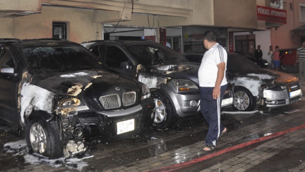Alınan bilgiye göre, Çağlayan Mahallesi 7506 Sokak'ta 5 katlı binanın altındaki oto galerisinin önünde park halinde bulunan 3 lüks otomobil, kimliği henüz belirlenemeyen kişi tarafından kundaklandı.