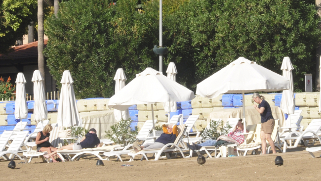 Turizm merkezi Side'deki otellerde tatil yapan turistler, plaj ve havuz kenarlarında güneşlendi.