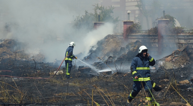 Depo olarak kullanılan tek katlı binadaki yangın, bitişikteki sazlık alana sıçradı.
