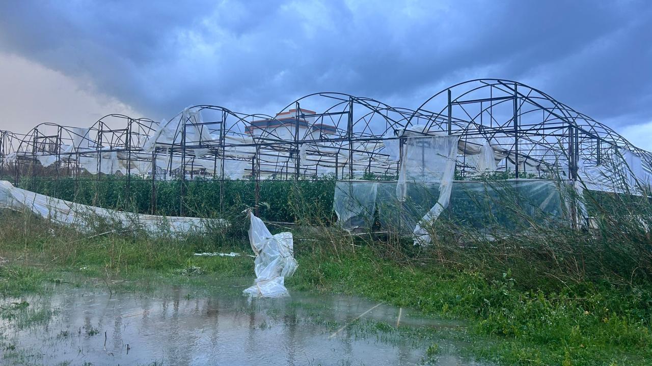 Finike ilçesi Hasyurt Mahallesi'ndeki seralar da hortumdan zarar gördü. Yağış nedeniyle Yarbaşı kanalı taştı.