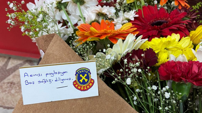 Trafik kazası sonrası yaralanan ya da yakınlarını kaybeden kazazedelere çiçek götürerek ziyarette bulunan ekipler, trafik kazasında insan faktörünün belirleyici olduğunu, kask takmanın ve emniyet kemeri kullanmanın önemini vurguladı.