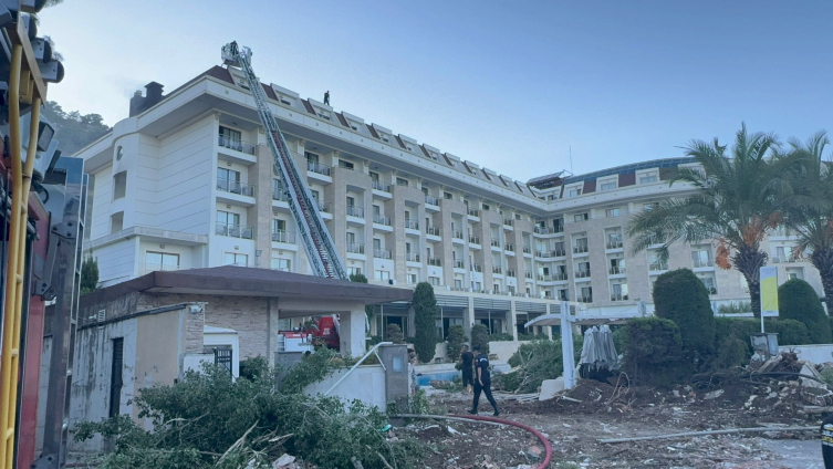 Beldibi Mahallesi'ndeki bir otelde henüz belirlenemeyen nedenle yangın çıktı.