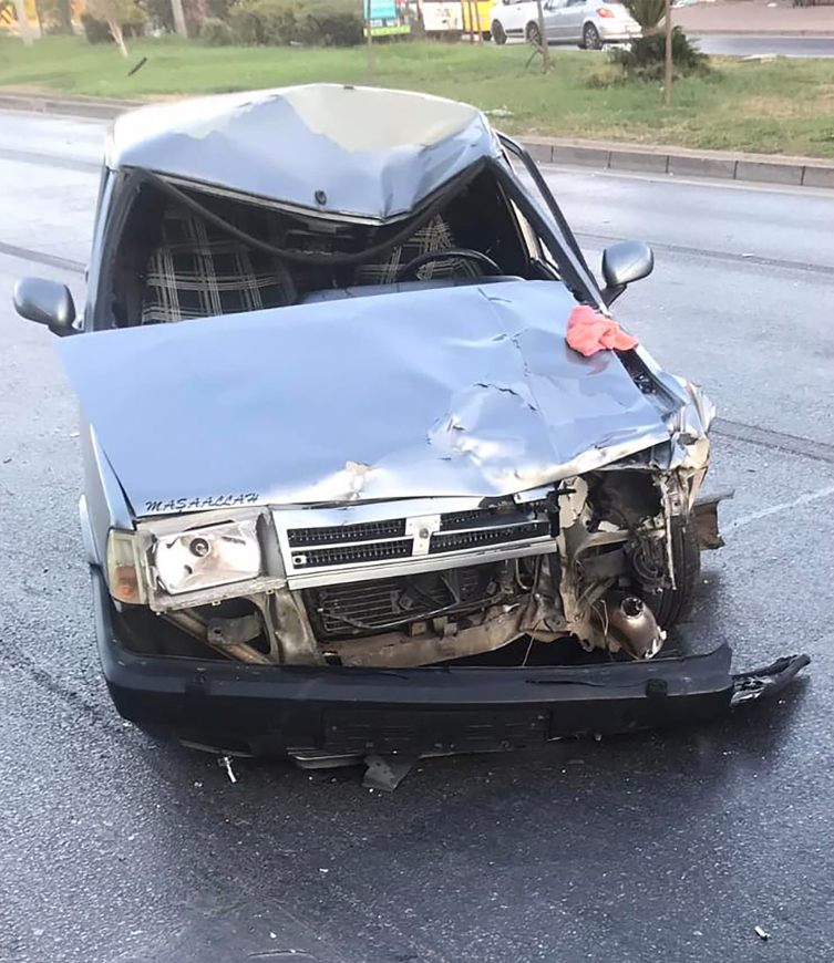 Kazada otomobil sürücüsü M.Y. ve araçta bulunan A.Ş. hafif yaralandı.