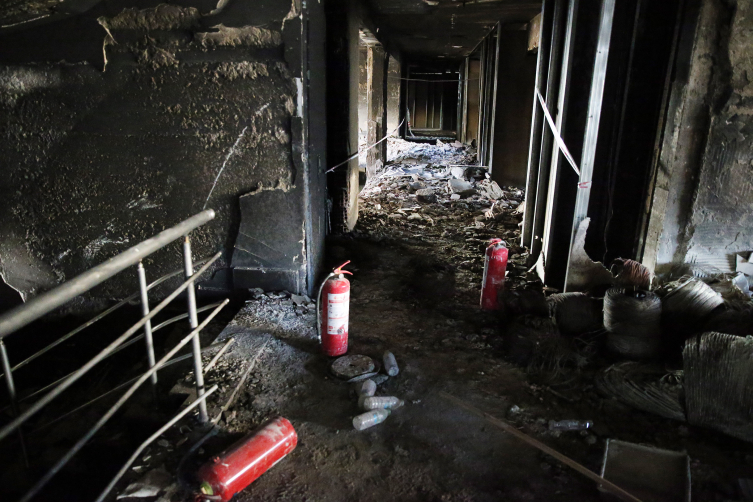 Öte yandan, dün akşam saatlerinde yanan otelin hasar gören alanları da gün ışığında görüntülendi. Görüntülerde, yanan 1. katta depolanan yatak, yastık, yorgan, otel malzemeleri, klima, banyo ve mutfak gereçlerinin de kullanılamaz hale geldiği görülüyor.