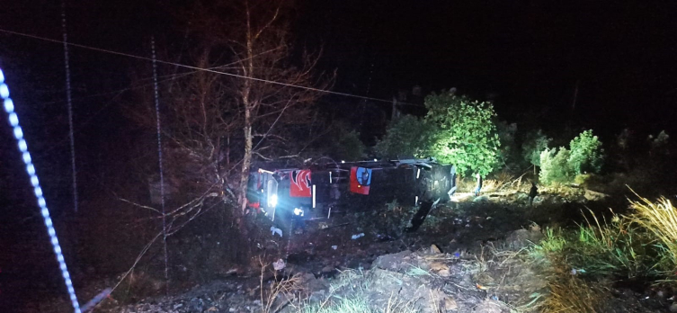 Antalya'dan Adıyaman'a gitmek üzere yola çıkan N.D. idaresindeki yolcu otobüsü, Zeytinada Mahallesi'nde şarampole devrildi.
