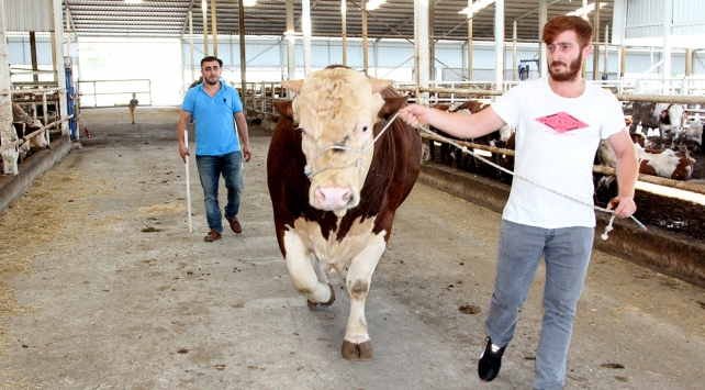 Ümit Değer (36), 2,5 yıl önce dünyaya gelen simental cinsi boğayı, günde 33 kilogram yemle besledi. Yonca ve yulaf verilen "Şampiyon" adlı hayvan, 1,5 tona ulaştı. Değer, kurbanlık boğayı 35 bin liradan satışa çıkardı.