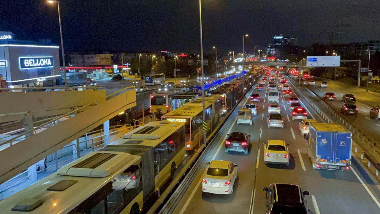 Arızalanan metrobüs dolayısıyla durakta uzun araç kuyruğu oluştu.