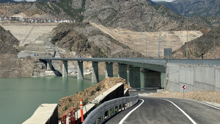 Yusufeli Barajı ve HES nedeniyle değişen kara yolu ağı kapsamında inşa edilen özel tasarım viyadükte araç geçişleri saat 08.00 itibarıyla başladı.