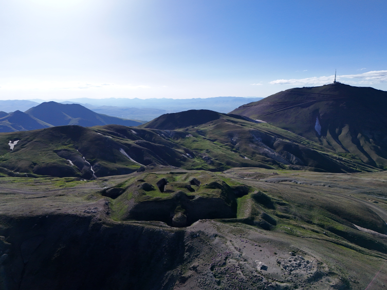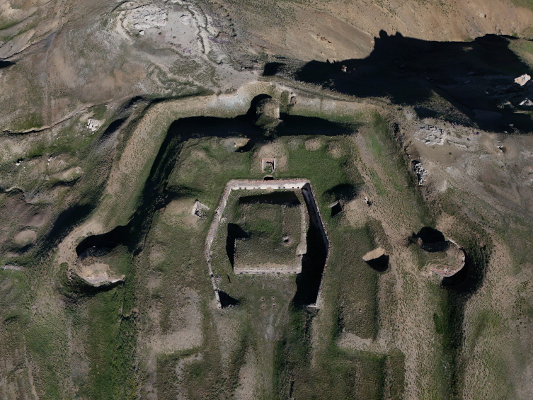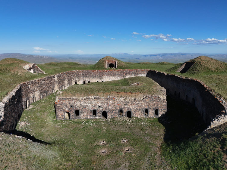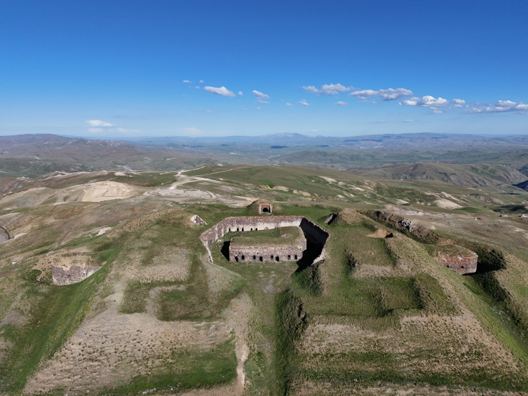 Palandöken Dağı'nda bulunan iki tabyadan biri olan ve dron ile görüntülenen asırlık tabya tarihi ihtişamını koruyor.