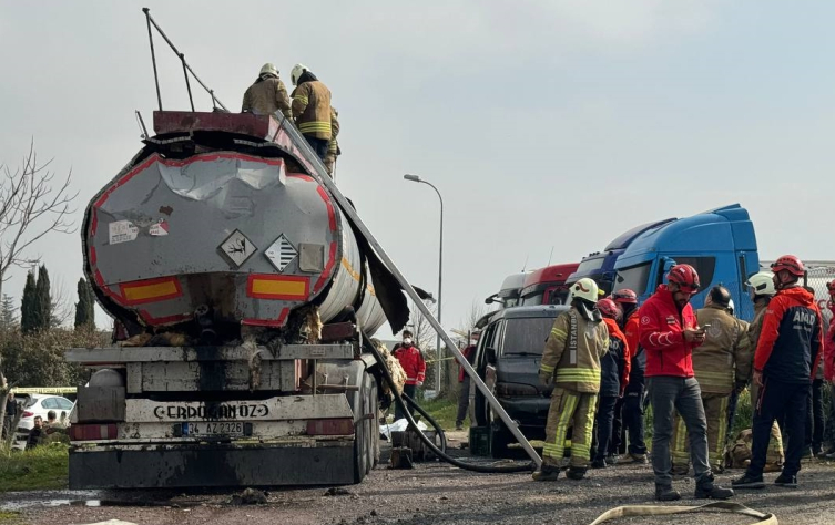 Ferhatpaşa Mahallesi Samandıra Caddesi'nde bulunan dinlenme tesisindeki akaryakıt tankerinde henüz belirlenemeyen nedenle yangın çıktı.