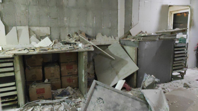 Ekipler, patlama nedeniyle kullanılamaz hale gelen iş yerinde inceleme yapıyor.