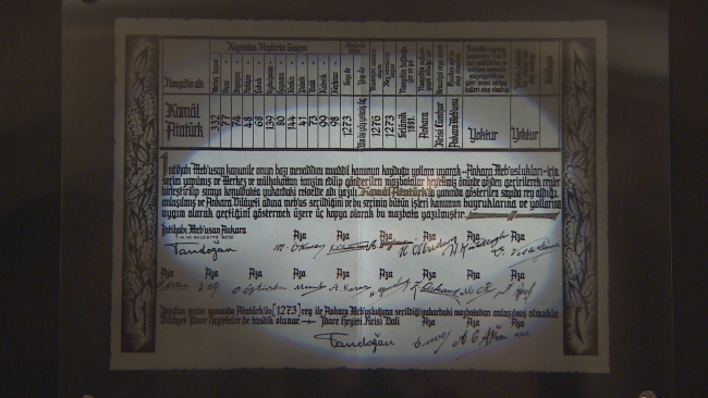 [Fotoğraf: TRT Haber]Gazi Mustafa Kemal Atatürk ömrü boyunca 5 kez milletvekili seçildi. Müzede 1935 yılına ait mazbatası bulunuyor, o mazbatada Ankara mebusluğuna 1273 oyla seçildiği not düşülmüş.