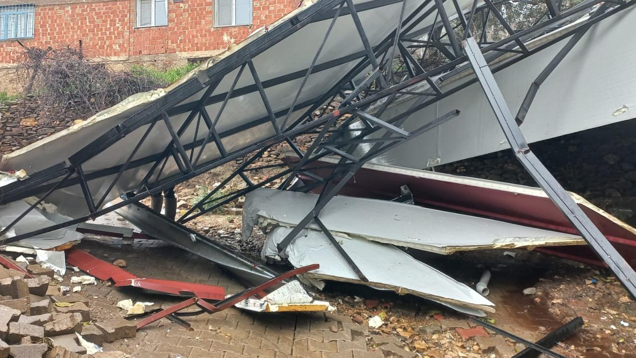 Bazı noktalarda ağaçlar devrildi, evlerin çatısı uçtu.
