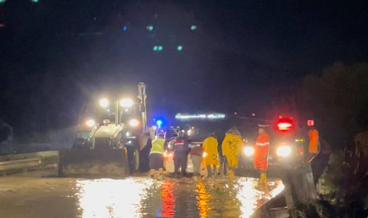 Maddi hasarlı bir kazanın da meydana geldiği yolda ulaşım tamamen durdu. Kara yolunda suda mahsur kalan bazı araçlar, ekiplerin yardımıyla kurtarıldı.