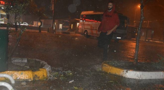 Kentte, saat 21.00 sularında başlayan dolu ve şiddetli fırtına nedeniyle bazı iş yerleri ve evleri su bastı.