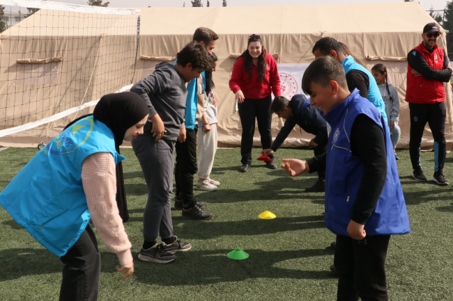 Zonguldak Gökçebey Gençlik Merkezi gönüllüsü Birol, Kahramanmaraş'a gelerek Batıpark Çadır Kent'te çocuklara yönelik etkinlikler düzenliyor.