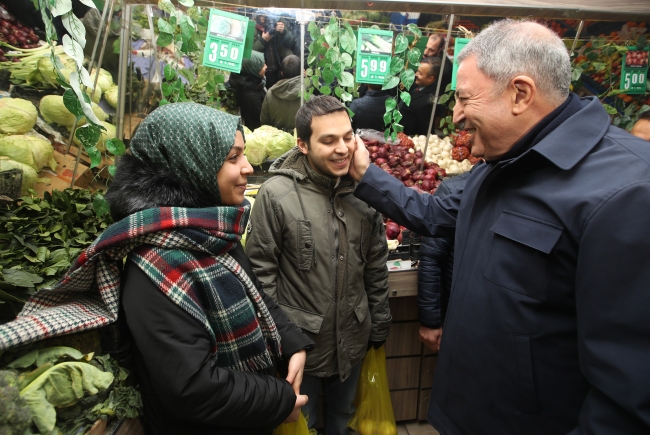 Bakan Akar ve Orgeneral Güler daha sonra çarşı esnafını da gezerek sohbet etti. Bir markette alışveriş yapan öğretmen çiftle de konuşan Akar, öğretmenlerin önemli bir görevi yerine getirdiklerini, vatanını, milletini seven nesillerin yetiştirilmesinde kendilerine önemli görevler düştüğünü dile getirdi.