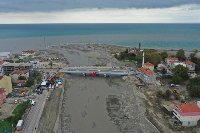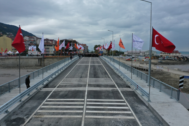 Afette yıkılan köprülerden birinin Çatalzeytin-Türkeli arasında bulunan Çatalzeytin Köprüsü olduğunu aktaran Karaismailoğlu, "Yıkılan 68 metrelik Çatalzeytin Köprüsü'nün yerine yeniden projelendirilen ve 90 metre uzunluğundaki köprüyü 52 gün gibi rekor bir sürede tamamladık. Üç açıklıklı yeni köprümüzün yüksekliğini de artırdık. Bu şekilde olası bir heyelan, taşkın anında çok daha güçlü ve çok daha fazla miktarda suyun geçişi sağlanacak." diye konuştu.