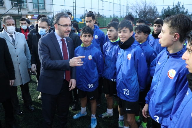 Kentteki temasları kapsamında Siirt İl Özel İdare Spor Tesisleri'ni ziyaret eden Gençlik ve Spor Bakanı Mehmet Muharrem Kasapoğlu, burada görüştüğü futbolculara milli takım forması ve kitap hediye etti.
