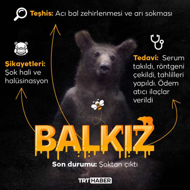 Ayının şoktan çıktığına dikkak çeken Ünlü, yörede orman gülü balının yaygın olduğuna, ayının da daha yavru olduğu ve bilemediği için acı balı yemiş olabileceğini söyledi.