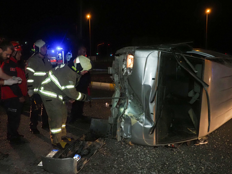 Cennetayağı Mahallesi İstasyon Bulvarı'nda, sürücüsünün kimliği öğrenilemeyen minibüs, aydınlatma direğine çarparak devrildi.