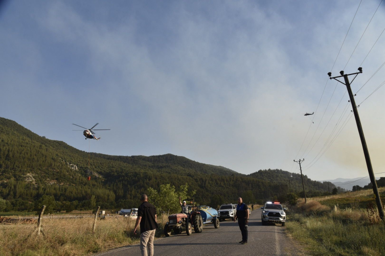 Ekipler, yangına havadan bir helikopter, 3 uçak ve karadan da 10 arazöz, 4 su ikmal aracı, 5 ilk müdahale aracı, 2 dozer ve 100 personelle müdahale etti.