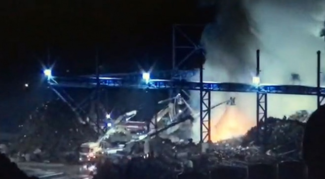 Bartın Organize Sanayi Bölgesi'nde faaliyet gösteren demir çelik fabrikasının hurdalık bölümünde yangın çıktı.