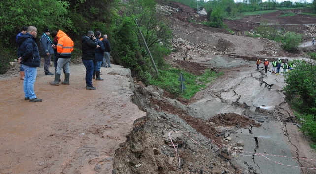17 köye ulaşımın sağlandığı karayolunun yaklaşık 100 metrelik bölümünün çöktüğü bölgede, Karayolları ekipleri çalışma başlattı.