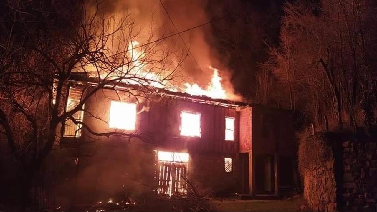 Alevler kısa sürede ahşap evin tamamını sararken, yangını görenlerin ihbarı üzerine olay yerine itfaiye ekipleri gitti.