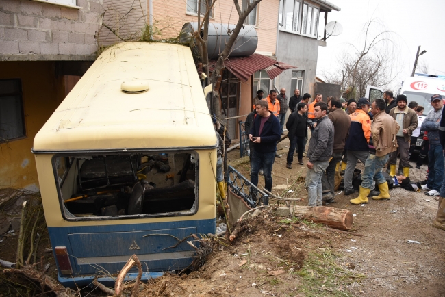 Yol inşaatında çalışan işçileri taşıdığı belirtilen İsmail Demir yönetimindeki 67 DT 974 minibüs, Kanatlı köyü mevkisinde rampadan inerken kontrolden çıktı. Araç, yol kenarındaki, Yılmaz Küheylan'a ait 2 katlı eve çarparak durdu.