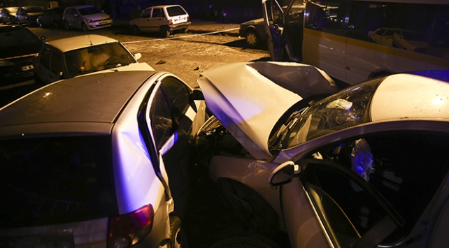 Çarpışmanın etkisiyle savrulan servis minibüsü yol kenarında park halindeki 3 otomobile zarar verdi.