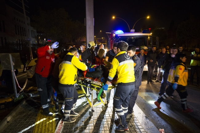Ankara'da otomobilin yön levhası direğine çarpması sonucu 3 kişi yaralandı.