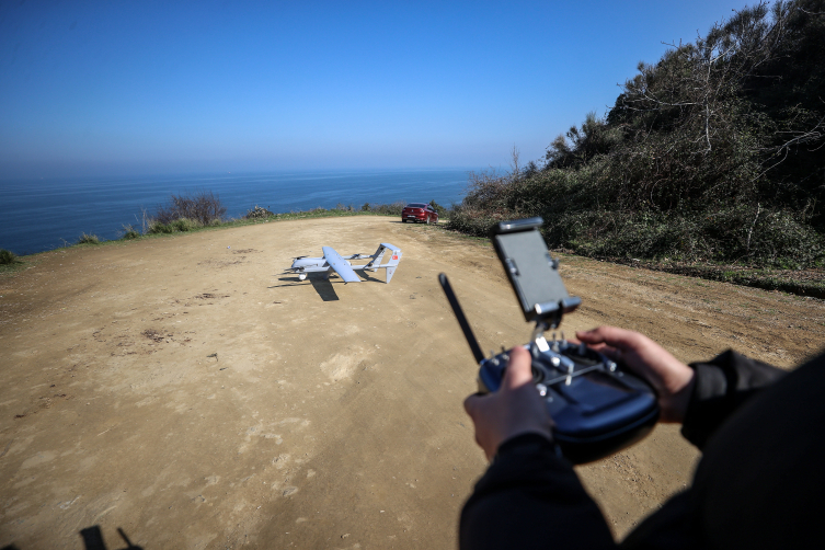 Kıyı kesimindeki renk farklılıklarına odaklanan İHA, havada 2 saat kalabiliyor.