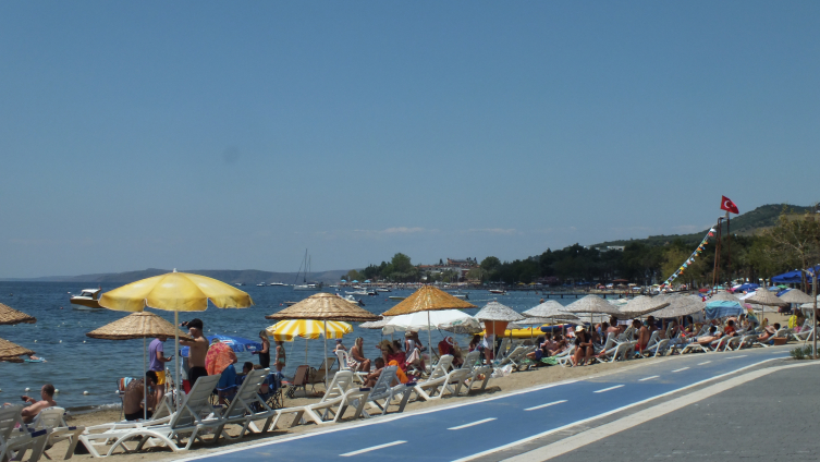 Erdek'teki mavi bayraklı plajlar tatilcilerle doldu