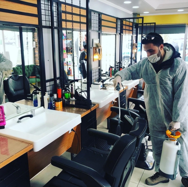 İş yerlerinin temizliğini yapan berber ve kuaförler ile güzellik merkezi işletmecileri, hem tıraş ve bakım esnasında kullanacakları malzemeleri temizleyip dezenfekte ediyor hem de müşterilerinin sosyal mesafe kurallarına uyması için iş yerlerindeki düzenlemeleri yapıyor.