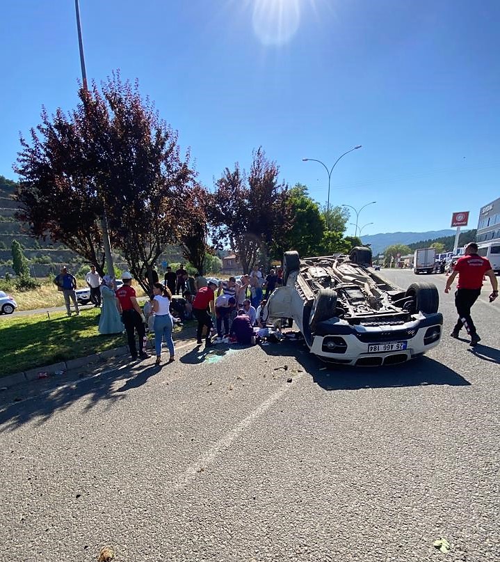 Çarpmanın etkisiyle otomobil takla attı.
