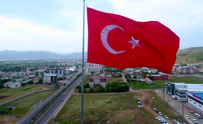 Bingöl'ün Ekinyolu köyündeki İl Emniyet Müdürlüğü Özel Harekat Şubesi önünde kurulan 70 metre uzunluğundaki direğe, 350 metrekare büyüklüğünde Türk bayrağı çekildi.