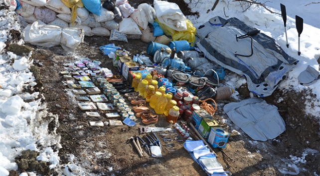 Operasyonda, terör örgütü mensuplarınca kullanılan sığınak bulunduğu kaydedilen açıklamada, sığınakta 60 kilogram bulgur, 560 kilogram un, 50 paket hazır çorba, 35 kilogram çay, 10 pil, 50 kilogram pirinç, 50 kilogram nohut, 4 tüp başlığı, 20 paket maya, 25 kilogram toz şeker, 13 kilogram makarna, 10 kilogram tuz, 7 çift ayakkabı, 10 iç çamaşırı, 6 tıraş takımı, 10 kalem, 3 paket kaya tuzu ve 50 adet kumanya ele geçirildiği bildirildi.