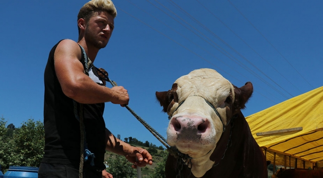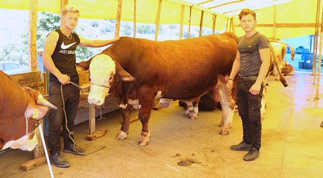 Şahin, "Şampiyon kendi ineğimin danasıydı, 27 aylık. Kurban pazarının en büyüğü. Özel bir bakımla böyle gelişiyor. Palet yem ile besleniyor. Arpa, mısır ile palet yem veriyoruz. Haliyle de güzel et tutuyor." dedi.