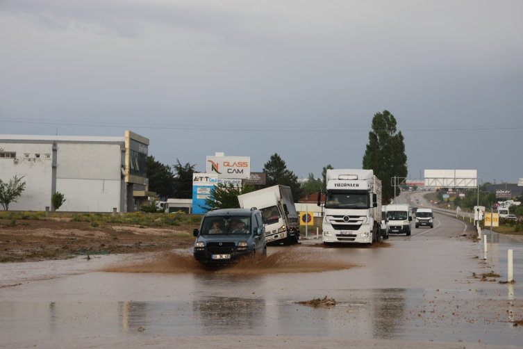 Kentte kuvvetli yağış hayatı olumsuz etkiledi. Mazgallardan sular taşarken, Sungurlu Caddesi Kırıklı mevkisinde yamaçtan akan çamur trafiğin aksamasına neden oldu.