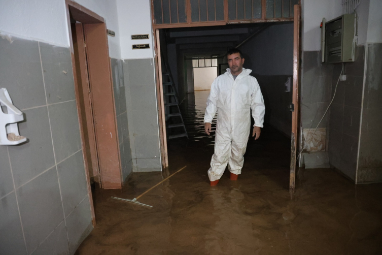 İtfaiye ekibi ve görevliler su tahliyesi yaptı.