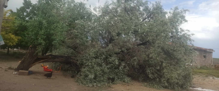 Öte yandan aynı bölgedeki Hasaoba mevkisinde ise 20 yıllık bir iğde ağacına ise yıldırım düştü. Olayın ardından şok geçiren Bayram Bascı, "20 yıllık iğde ağacıydı, yıldırımdan sonraki halini görünce şok olduk." dedi.