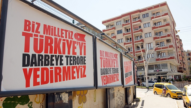 Mardin'de, Fetullahçı Terör Örgütü'nün (FETÖ) darbe girişimi ile terör örgütü PKK'nın saldırılarına tepki amaçlı olarak cadde ve sokaklardaki bilboardlara, "Biz milletiz Türkiye'yi darbeye teröre yedirmeyiz" yazılı afişler asıldı.