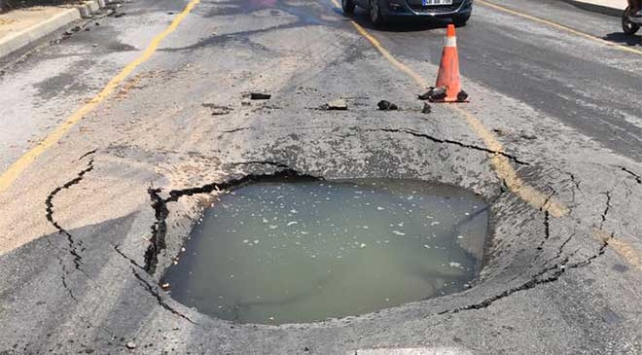 Bodrum ilçesinde, içme suyu isale hattında meydana gelen patlama nedeniyle karayolunda büyük çukur oluştu, bazı evleri su bastı.